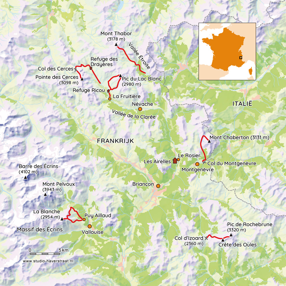 Briançon is een oud vestingstadje in de Hautes-Alpes te midden van drie heel verschillende berggebieden. Ten zuidwesten liggen de Ecrins, het meest bekende massief door de gletsjers, vierduizenders en het gelijknamige Parc national des Ecrins. Ten zuidoosten liggen de Queyras en het gelijknamige Parc Naturel Régional du Queyras, een ruige afgelegen streek tegen de grens met Italië aan en alleen bereikbaar door een kloof en via hoge passen. En ten noorden van Briançon ligt de Vallée de la Clarée, een bij Nederlanders minder bekend gebied dat zijn oorspronkelijke karakter heeft behouden doordat het zo afgelegen en ingesloten tussen de bergen ligt. Het is nu een beschermd natuurgebied zonder skiliften en met authentieke dorpjes zoals het levendige Névache.